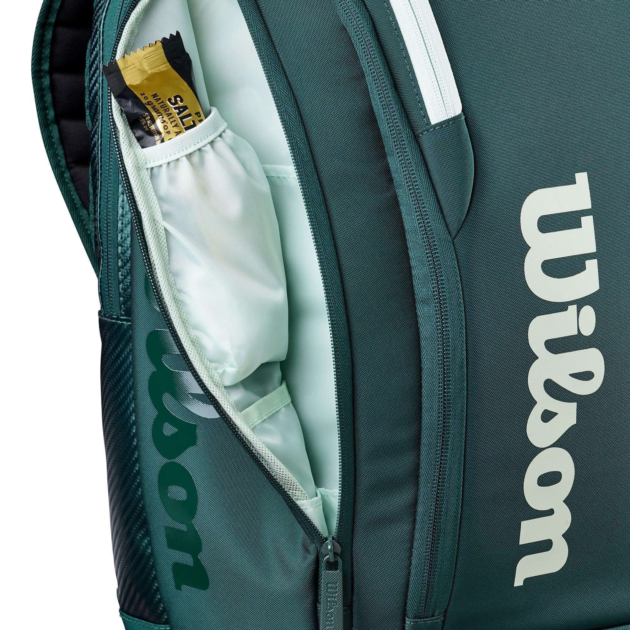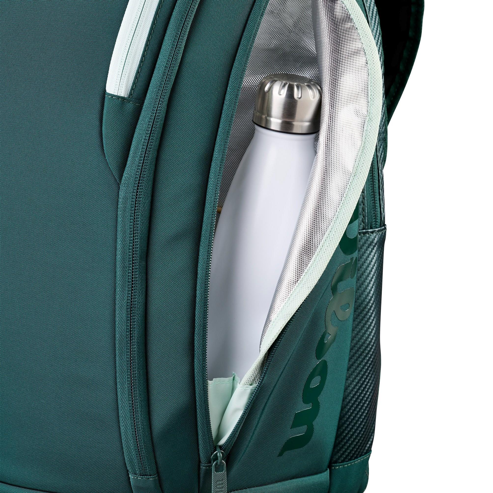 Repussa on oma mailalokero, jonka avulla voit kuljettaa mailasi helposti ja turvallisesti kentälle ja kentältä. Lisäksi repussa on tilava päälokero vaatteille, pyyhkeelle ja muille varusteille sekä useita pienempiä lokeroita, joiden avulla voit järjestää tarvikkeet ja henkilökohtaiset tavarat kätevästi. Älykäs jako varmistaa, että sinulla on aina täysi kontrolli pakkaamiseen.
